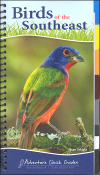 over the larger bird guides! Organized by color, each page provides a snapshot of 10 birds with a brief description of other markings. That is all. Short, sweet and helpful! Added benefit, sections offer color-coded tabs that match birds. For example in the Birds of the Southwest, flip to the blue tab and you see 2 pages identified as "Mostly Blue" birds. A sampling of images included is: Mountain Bluebird, Blue Grosbeak, Lazuli Bunting and Belted Kingfisher. Spiral bound, water-proof books, measure approximately 4 1/2x7 1/2"-perfect to tuck into your pocket or back pack. Approx. 20 pgs. ~Deanne