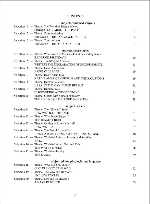 Out of the many comprehension workbooks I have used and reviewed, this series is my personal favorite. It contains great variety in subject matter and excellent thinking questions. Before reading each of the 31 reading selections per book, a short introduction gives a little background information and states the reading skill to be emphasized. Selections include pieces on general topics, mathematics, philosophy, literature, science, social studies, logic and thinking, language, and the arts. Because this is a secular program, you may choose to preview some of the reading selections, particularly in the upper grades. Following the selections are questions which require students to find the main idea, identify sequence, draw conclusions, make assumptions, match vocabulary words to meanings, and identify and interpret facts. Although this series is my favorite, our children are not as certain, since these books really made them think. Please note that there are no answers included in the workbooks. All answers are provided in the small Teacher Keys, available for each workbook as a separate but inexpensive purchase.