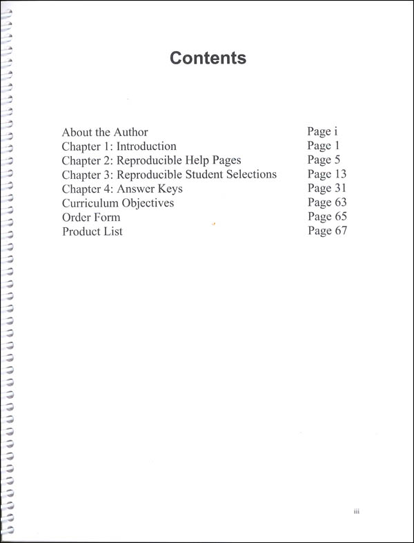The Teacher Guides include an introduction to the program, weekly Help pages geared to that specific student level, the weekly reading passages, and answer keys for all the student’s activities. They are spiral-bound softcovers and the weekly reading passages are reproducible.